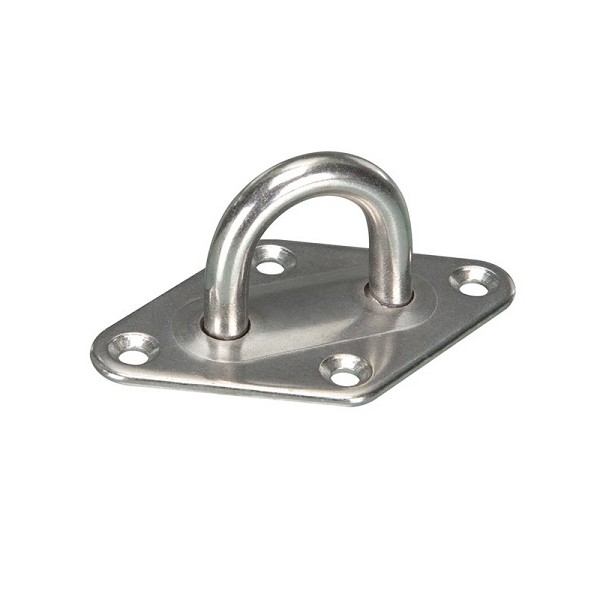 Anneau en acier monté sur une plaque de fixation perforée. A fixer au mur ou au sol pour, par exemple, des chaines de balisage.