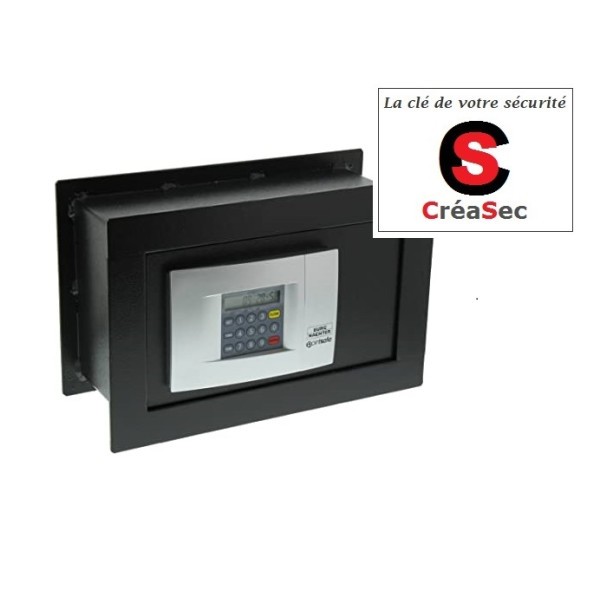 Coffre fort mural, d'une profondeur de maximum 14 à 19,5 cm, il doit être intégré dans le mur. C'est tout le béton qui sera autour qui le rendra fort ! Oiuverture par clvier électronique et livré avec clé de secours