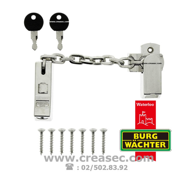 Entrebailleur a chaine de 14 cm ouverture uniquement par clef. Impossible a défaire sans la clef. Disponible en version chromée uniquement