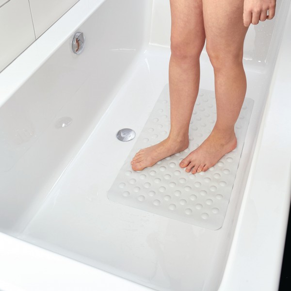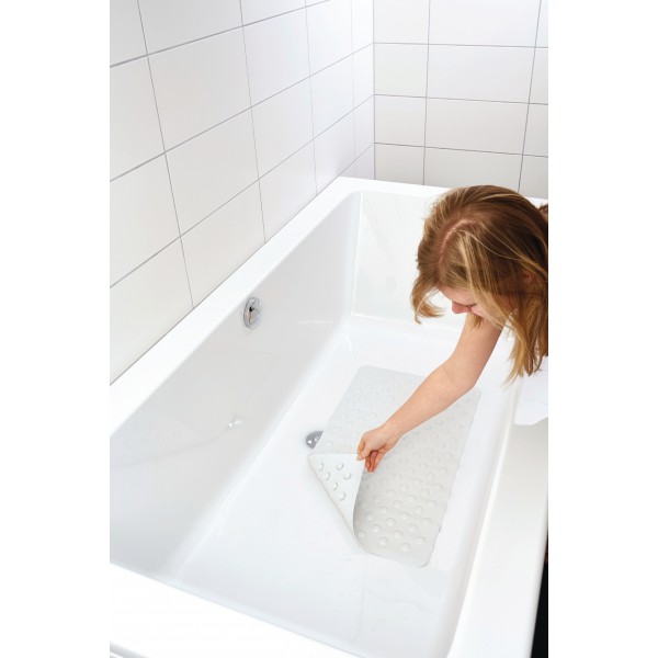 De mat voorkomt dat men uitglijdt, wanneer men in en uit bad of douche stapt. Wanneer men in bad zit biedt de badmat meer grip, wat onderuit glijden voorkomt. Aan de bovenzijde heeft de mat noppen, waardoor de mat een extra antislip werking heeft. De onderzijde van de mat is over het volledige oppervlak voorzien van zuignappen die voorkomen dat de mat wegglijdt tijdens gebruik.