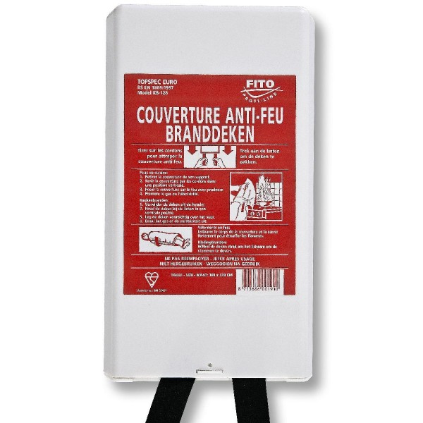In geval van brand trekt u de deken in één keer uit de kunststof koker en legt hem over het vuur.